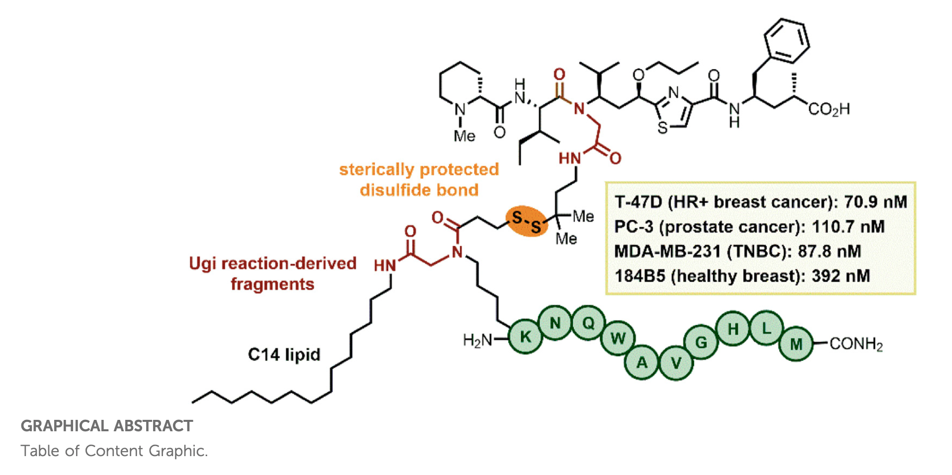 Dolastatins are a class of naturally occurring antimitotic peptides that have inspired the development of some of the most active and widely used anticancer agents. Here, we report on the development of synthetic methodologies for the preparation of parallel libraries of small peptides inspired by dolastatin 15 and itsanalogs cemadotin and tasidotin. The approaches rely on the use of either one or multiple Ugi-multicomponent reactions to generate amide N-substituted dolastatin-like skeletons, which allow the exploration of tertiary amide chemical spaces that have not been assessed previously. Evaluation of the anticancer activity in a variety of cancer cells showed that introducing a tertiary amide at the C-terminal fragment or by replacement of a proline residue does not lead to an increment in the anti-proliferative activity. The microtubule-disrupting capacity of the new dolastatin analogs was studied and compared with other potent antimitotic agents, thereby shedding light on mechanistic details of their anti-proliferative activity.